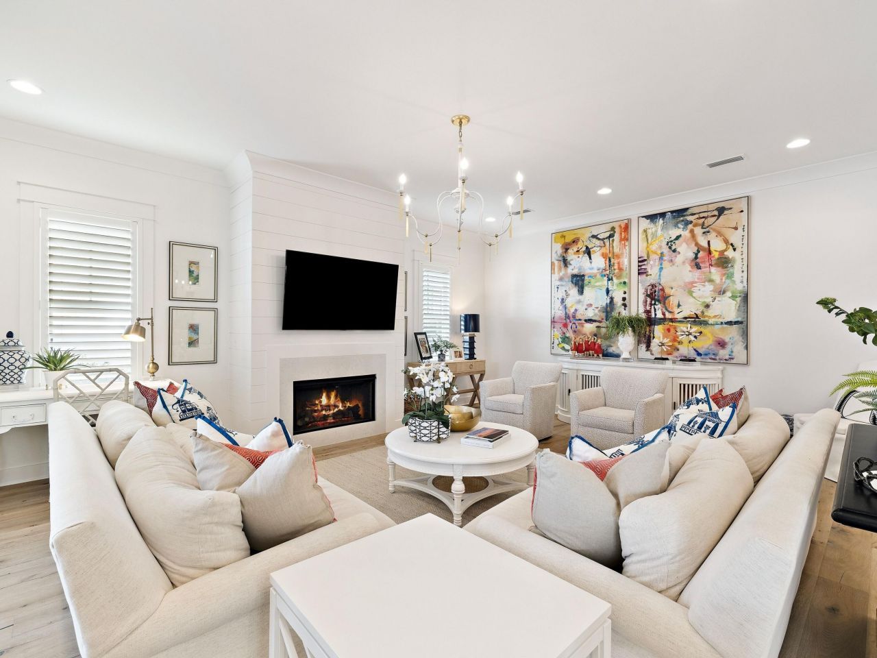 Positioned within the sought-after Watersound Origins community, 39 West Firethorn Circle presents a refined coastal retreat defined by timeless architecture, thoughtful design, and seamless indoor-outdoor living. Framed by classic coastal elevations and welcoming front and rear porches, this one-level, easily accessible residence offers both comfort and understated sophistication. Spanning approximately 2,612 square feet, the four-bedroom, three-bath home is designed for effortless living. Inside, wide-plank wood flooring, soaring 10-foot ceilings, and abundant natural light create a bright and inviting atmosphere throughout. The open-concept living spaces are anchored by a shiplap fireplace wall and flow seamlessly into the gourmet kitchen, where quartz countertops, custom cabinetry, stainless steel appliances, and an expansive center island provide both function and a natural gathering space for entertaining. Designer lighting and curated finishes elevate each space while maintaining a relaxed coastal aesthetic.The thoughtfully designed floor plan offers four spacious bedrooms and three full bathrooms, balancing privacy and connection. The primary suite serves as a private sanctuary with generous proportions, tranquil natural light, a spa-inspired bath with dual vanities, refined finishes, and a spacious walk-in closet.Extending the living experience outdoors, the expansive, screened rear porch overlooks the fenced backyard, creating a private setting for year-round enjoyment and entertaining. A two-car garage adds convenience and additional storage.Residents of Watersound Origins enjoy access to Village Commons amenities, including a resort-style pool, fitness center, tennis and pickleball courts, miles of walking and biking trails, and access to Lake Powell. Combined with proximity to Scenic Highway 30A, championship golf, dining, and the gulf's white-sand beaches, this residence offers an ideal balance of privacy, accessibility, and elevated coastal living.